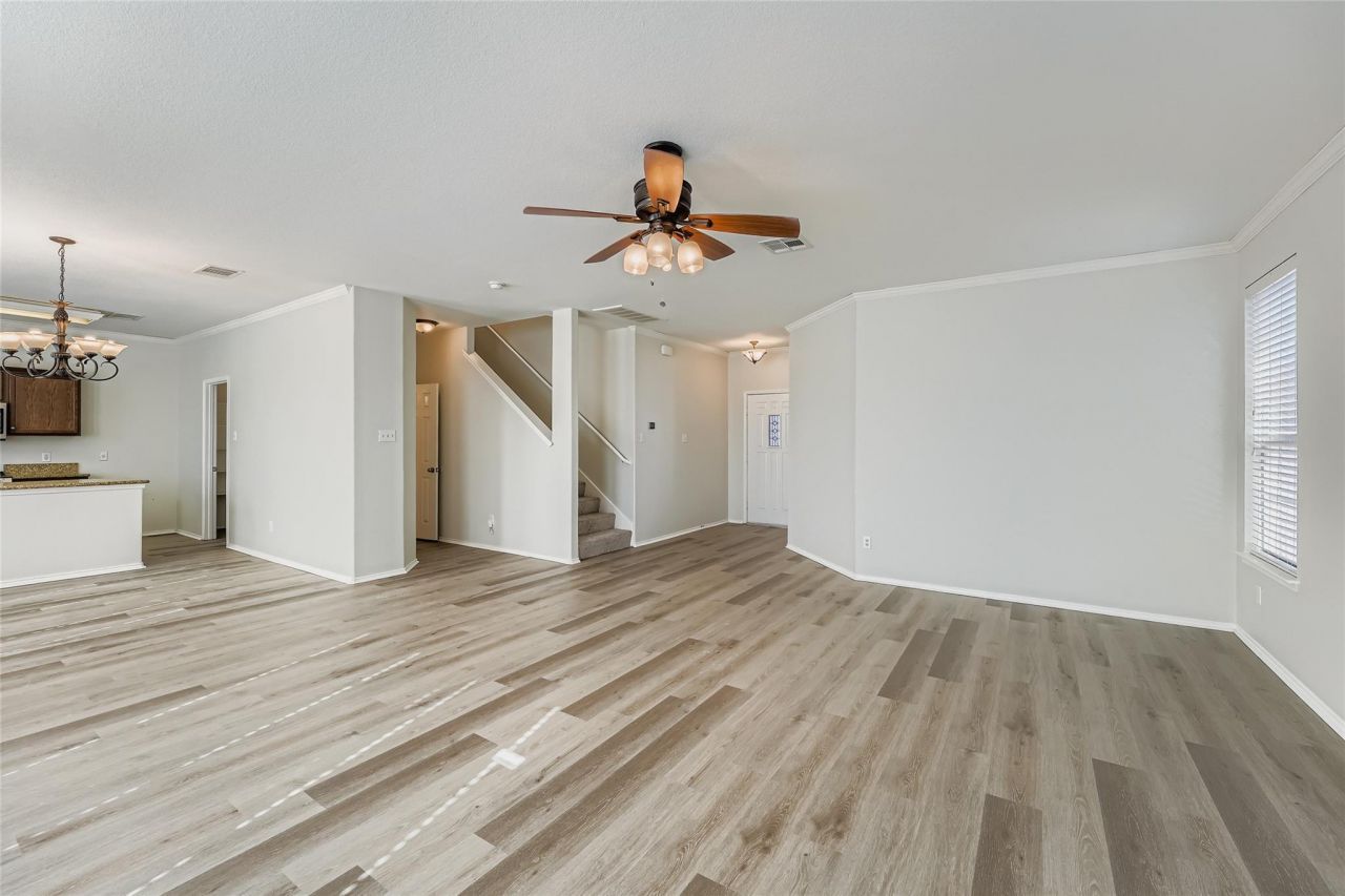Welcome to 104 Mossy Rock Cove!This spacious 3-bedroom, 2.5-bath, w/ dedicated office suite home offers over 2,600 square feet of thoughtfully designed living space, perfectly nestled on a quiet cul-de-sac street. The main level hosts all primary living areas, creating an ideal flow for everyday living and entertaining, and includes a convenient half bath for guests. Two separate living areas provide flexibility for gathering, relaxing, or creating a dedicated game or media space. The kitchen is well-appointed with ample cabinet storage, a center island, and stainless steel appliances, making it both functional and inviting. All bedrooms are tucked away upstairs for added privacy, including the primary suite with access to its own private balcony?an ideal spot to unwind. Outdoor living is a true highlight, featuring a welcoming front porch, an expansive backyard, and a large patio with plenty of space for outdoor furniture and entertaining. With multiple outdoor spaces to enjoy and a desirable cul-de-sac lot, this home offers comfort, functionality, and room to grow. Discounted rate options and no lender fee future refinancing may be available for qualified buyers of this home.