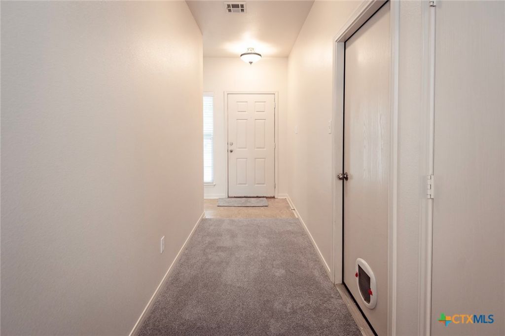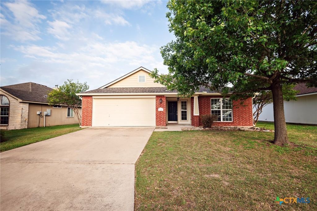 Charming and move-in ready, this 4-bedroom, 2-bath home with a 2-car garage offers 1,541 square feet of comfortable living space in a great neighborhood with convenient access to IH-35. Perfect for first-time buyers or those looking to downsize, this home features a smart layout with maximized living spaces and an additional kickout area ideal for extra dining, a home office, crafting space, or cozy sitting area. Fresh interior and exterior paint, along with all newly installed carpeting, give the home a clean and updated feel. The spacious primary suite includes a private bath with double sinks and a relaxing garden tub. Step outside to enjoy the large covered patio and fenced backyard, complete with a storage building for added convenience. A wonderful opportunity to own a versatile and well-maintained home in a prime location!