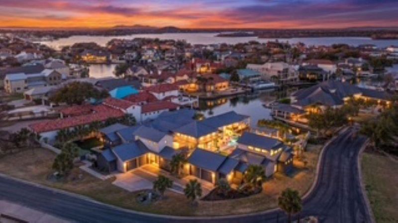 Set along the coveted shores of Lake LBJ in the heart of the Texas Hill Country, 116 Wennmohs Place is a stunning waterfront estate that is the epitome of lakeside living. Spanning over an acre with 155 feet of prime waterfront on a wide, protected cove with open water views, this exceptional property offers privacy and seamless indoor?outdoor living. Designed for both relaxed lake-living and unforgettable entertaining, the home features two expansive decks at the waters edge, multiple covered terraces with privacy shades and a misting system for year-round enjoyment. Resort-style grounds include a heated pool and spa, fire pit, outdoor kitchen, fountain, outdoor shower, putting green, outdoor TVs, as well as a drop-down cinema screen. Inside, innovation meets casual contemporary design with a fully integrated Elan smart home system, ADT security, and whole-home custom audio. The thoughtfully designed floor plan offers seven bedrooms, including two spacious primary suites, an impressive media room, indoor golf simulator, and gym. The chefs kitchen is beautifully appointed with Thermador appliances, multiple ovens, and generous prep and entertaining spaces?perfect for hosting at any scale. Automotive and recreational accommodations are equally impressive, with two heated and cooled two-car garages, each with dedicated golf cart bays. Complete with two boat lifts, two jet ski lifts, and effortless lake access, this estate is lake life at it's finest - an extraordinary legacy property!