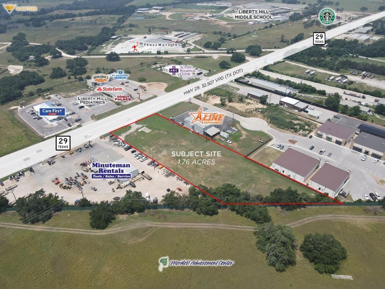 Gold Tier Real Estate is proud to present a 1.76 acre commercial tract on Highway 29 in Liberty Hill, Texas. With its excellent development potential and strategic location, this property is a must-see for anyone seeking to invest or develop in the booming Liberty Hill economy.With easy access to major highways such as Highway 29 and Highway 183 and other local transportation hubs, this property offers a convenient location for businesses of all types. Whether you're looking to build a flex industrial, retail center, or office complex, this tract of land has the potential to accommodate a variety of commercial ventures. The current zoning is commercial. There is an 8 water line along Highway 29 and a 6 and 10 wastewater line running through the subject site. The site is level. There is no FEMA flood zone or wetlands. The buyer is responsible for replatting the property. **Prospective purchasers are advised to conduct independent analyses of the property. The broker does not warrant the accuracy of any information provided.**
