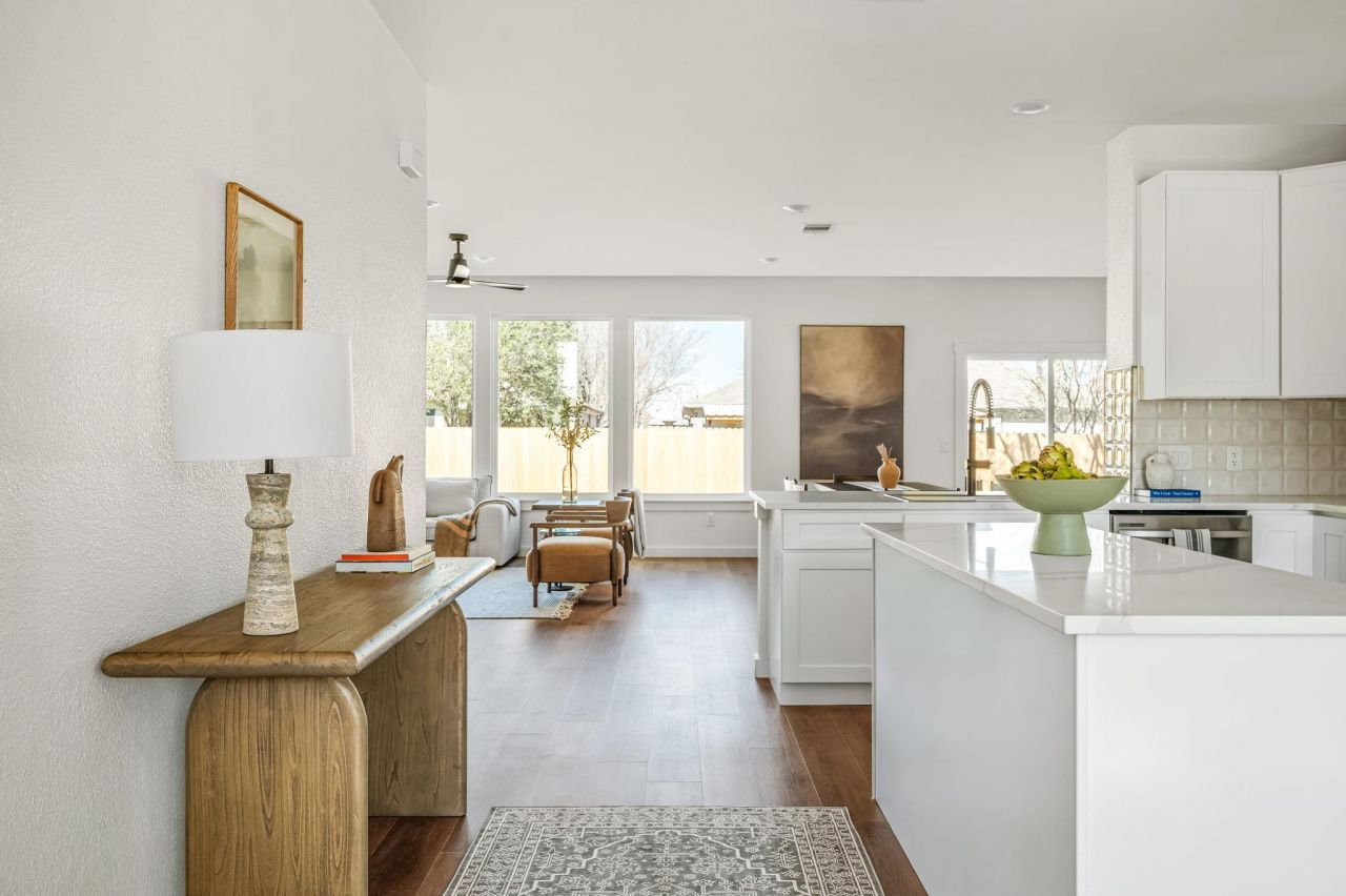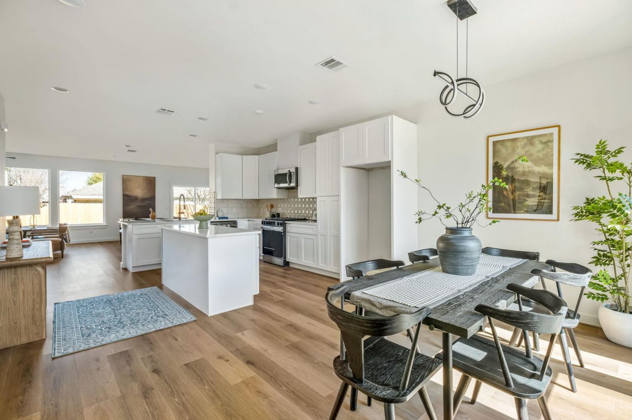 Welcome to 1516 Natural Bridge Lane, a beautifully remodeled single-story home offering 3 bedrooms, 2 bathrooms, and an inviting open-concept layout filled with natural light.From the moment you step inside, youre greeted by warm wood flooring and a seamless flow between the living, dining, and kitchen spaces. Expansive windows line the back of the home, flooding the interior with sunlight and creating a bright, airy atmosphere throughout. The spacious living room feels both modern and cozy, anchored by clean lines, neutral tones, and plenty of room to gather or unwind.The open kitchen is thoughtfully designed with crisp white cabinetry, sleek countertops, a farmhouse sink, and a large peninsula perfect for casual seating or entertaining. It opens effortlessly into not one, but two dining areas?ideal for hosting dinner parties, creating a flex space, or enjoying everyday meals with ease.The private primary suite offers a peaceful retreat, while the beautifully updated ensuite bathroom features dual vanities, stylish black fixtures, warm wood cabinetry, and timeless tile surrounding the soaking tub and shower. Two additional bedrooms provide flexibility for guests, a home office, or growing households?all conveniently located on one level for easy living.Situated in the heart of Pflugerville, this home offers quick access to major roadways, local parks, shopping, and dining. Enjoy being just minutes from Lake Pflugerville, Stone Hill Town Center, and everything the greater Austin area has to offer, while still appreciating the charm and community feel that make Pflugerville such a desirable place to call home.