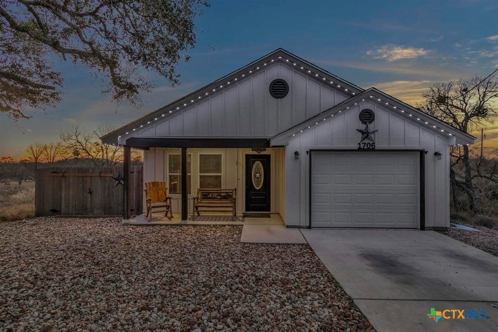 Welcome to Granite Shoals ? the City of Parks! Enjoy lake life at its best surrounded by beautiful parks, trails, and recreational amenities.This vibrant community offers boating, fishing, swimming at nearby parks, plus pickleball and tennis courts, a jogging trail, soccer field,and volleyball courts ? perfect for active families and outdoor enthusiasts. This 3-bedroom, 2-bath home built in 2023 features aspacious open floor plan, and stunning stained concrete floors throughout. The layout provides comfort and privacy, while the bright, airydesign creates an inviting atmosphere for everyday living and entertaining. Youll love the permanent Jellyfish lighting around the trim ofthe home to adjust for any occasion or just for the ambience. Relax out back on your own private deck to watch the sunsets or coffee inthe mornings. This home is Conveniently located just minutes from Lake LBJ ? ideal for weekend boating or sunset picnics at one ofthe nearby parks. Plus, youre only 8 minutes to Marble Falls, 20 minutes to Burnet, and about an hour to Austin. Come live the life youlove in Granite Shoals, where lake living and everyday comfort meet! STR's Allowed.