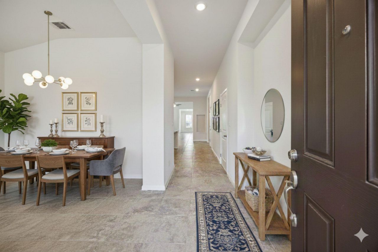 Modern Meritage single-story home on an oversized 0.19-acre lot, perfectly balancing style, comfort, and function. Just minutes from the community pool, Blackhawk Golf Course, and Lake Pflugerville, this 3-bed, 2-bath home also offers a dedicated study plus a versatile bonus/flex room (see floorplan). Soaring ceilings and abundant natural light highlight the open-concept layout, while the sleek kitchen features stainless steel appliances, subway tile backsplash, and a large granite island ideal for gatherings.The private primary suite includes bay windows, a walk-in closet, and an ensuite bath with an oversized shower, soaking tub, and extended vanity. A separate front office makes remote work effortless. Durable oversized tile floors run throughout the main areas, and the spacious backyard with covered patio is perfect for relaxing or entertaining.Built by Meritage?known for championing ENERGY STAR Certified homes?this property includes foam insulation and energy-efficient features for year-round comfort and savings. Easy access to SH-130 via Kelly Ln and minutes to TX-45.