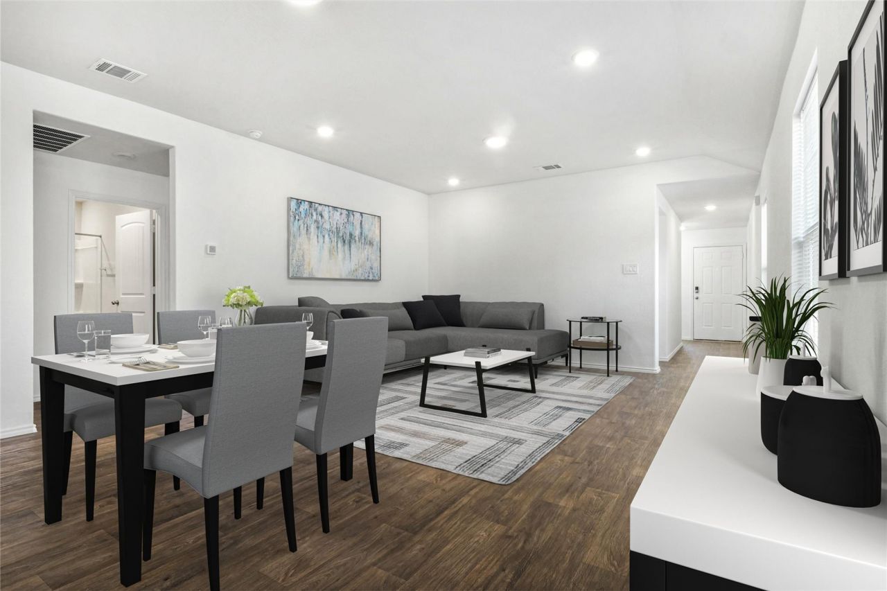 Welcome to your dream home in charming Cottonwood Creek neighborhood. Single story home built in 2021, features three spacious bedrooms and two full baths, perfect for families or those seeking extra space. The open floor plan creates a warm and inviting atmosphere, enhanced by high ceilings that add to the sense of spaciousness. Enhance your dining experience with an island bar offering extra seating. This functional and stylish addition is perfect for casual meals, entertaining guests, or enjoying a morning coffee. The primary bedroom features an expansive walk-in closet, meticulously designed for easy access to all your clothing and accessories. Indulge yourself in the luxurious walk-in shower, offering a serene retreat to unwind and rejuvenate after a long day. Step outside to the covered back porch, ideal for grilling and enjoying outdoor gatherings. Plus, with a playground and dog park nearby, there are plenty of opportunities for outdoor fun and recreation. With its modern amenities and move-in ready condition, this home is waiting for you to make it your own! Owner Financing Available