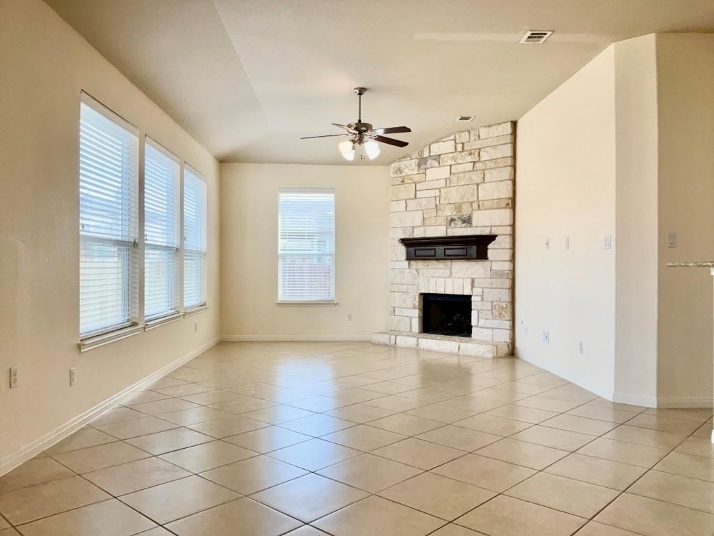 Youre going to love this beautifully maintained 4-bedroom home located in the desirable Estates at Settlers Park in Round Rock?offering space, comfort, and unbeatable convenience.From the moment you arrive, the three-car garage and expansive covered front porch make a lasting first impression?perfect for patio seating and welcoming guests. Step inside to a bright, airy living room featuring soaring vaulted ceilings, an exposed brick wood-burning fireplace as the stunning focal point, a ceiling fan, and easy-care tile flooring. Abundant windows flood the space with natural light and fresh air.The home offers both a casual eat-in dining area off the kitchen and a formal dining space accented with stylish pendant lighting?ideal for everyday meals or entertaining. The modernized kitchen is thoughtfully designed with:Dark brown cabinetryDecorative tile backsplashStone countertopsStainless steel appliances, including a gas rangeA peninsula with bar-top seatingThe primary suite is carpet-free and generously sized, featuring a ceiling fan and multiple windows. The primary bathroom delivers comfort and relaxation with a large walk-in closet, a deep soaking tub, and a walk-in shower to suit your preferences.Additional bedrooms are spacious and share a full bathroom with a tub/shower combo. A dedicated laundry room includes full-size washer and dryer for added convenience.Step outside to an expansive covered patio overlooking a large fenced backyard?perfect for outdoor dining, relaxing, or entertaining.Prime Location:Situated just off E Old Settlers Blvd, this home offers quick access to highways, shopping, dining, and entertainment?everything you need just minutes away.This stunning home is move-in ready and wont last long. Schedule your tour today and see it for yourself!