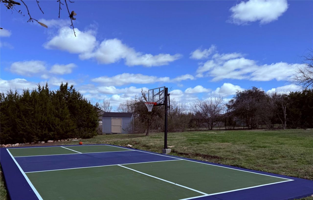 Welcome to this stunning home, expertly crafted by Drees Custom Builders. The picturesque circular driveway enhances its curb appeal, sits on a spacious one-acre lot, offering both privacy and sophistication. Abundant natural light with open two-story family room showcases the pool and city views. Elegant hardwood floors, designed kitchen, featuring a striking copper barn sink, dual built-in ovens, and ample cabinet space. The home boasts 4 bedrooms with 4.5 baths. First floor features, Master Bedroom, AND 2nd bedroom with Full Bath, separate study & powder room. Second floor Huge media room & game room conneted together is perfect for entertaining, complete with a wet bar with sink and mini fridge. The inclusion of the (unfinished) attic for a recording studio / 2nd office / Art studio, or extra storage is an interesting bonus. Step outside to the backyard, where youll find the perfect space for entertainment and relaxation. Enjoy beautiful pool, with heated spa and a versatile Sport Court with a Basketball Hoop & Pickleball. The fully fenced yard along with mature trees, ensures privacy and tranquility, along with the Tuff-shed storage. The back patio, take in breathtaking city night lights?a truly mesmerizing feature.