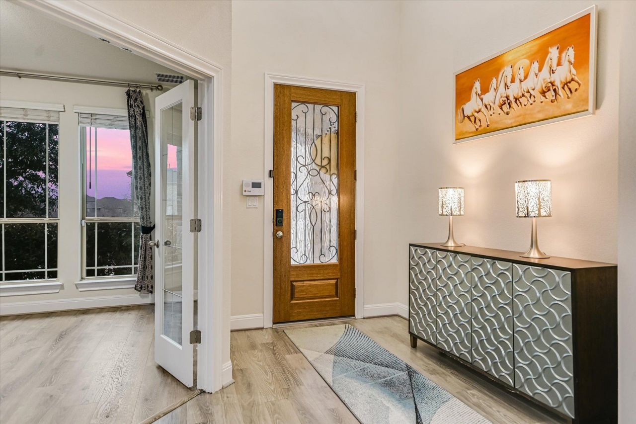 Former Meritage Model Home. Highly coveted Savannah plan nestled in the sought-after Oak Creek community. This beautifully designed 4-bedroom, 3.5-bath home offers 2,913 square feet of thoughtfully planned living space, featuring soaring volume ceilings in the foyer and great room that create an immediate sense of warmth and openness from the moment you walk in.The layout is ideal for both everyday living and entertaining, with a dedicated media room and adjacent game room that give every member of the household their own space to unwind. French doors, custom shutters, and surround sound pre-wiring add upscale touches throughout. The kitchen is well-appointed and flows naturally into the main living areas, keeping the home connected and inviting.Built with Meritage's signature energy-efficient construction, this home is designed to lower utility costs and create a quieter, healthier living environment ? savings you'll feel every month. The automatic sprinkler system keeps the exterior looking sharp year-round with minimal effort.Step outside the front door and enjoy everything Oak Creek has to offer, resort-style pool, covered pavilion, hike and bike trails, parks, and playground, all within the community. Zoned to highly rated Leander ISD, one of the most respected school districts in Texas. Conveniently located off 183A near San Gabriel Parkway, with easy access to the MetroRail for a stress-free commute into Austin. Close to shopping, dining, and Leander's exciting new Northline district. This one checks every box. Truly a rare gem.