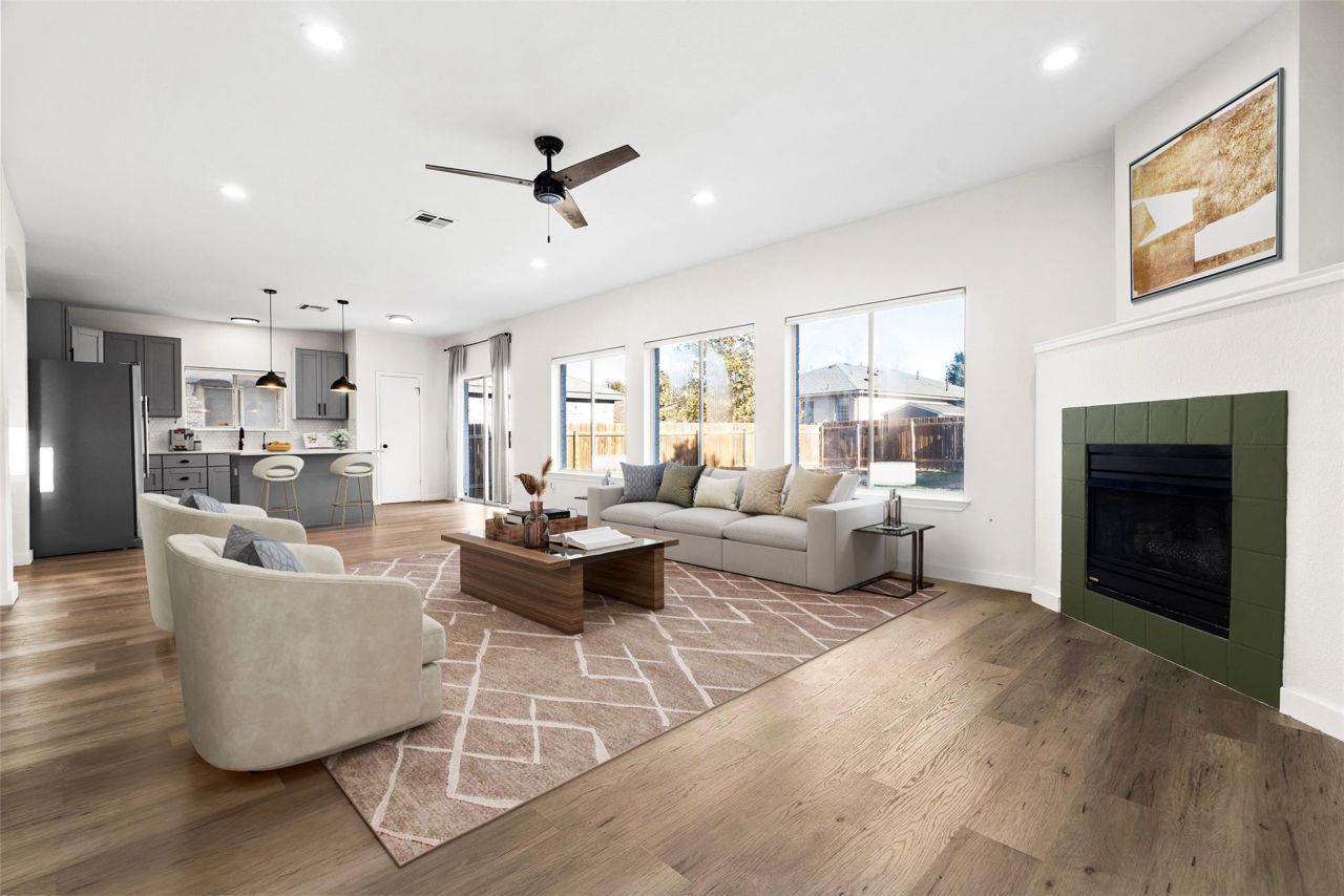 A rare blend of modern luxury and farmhouse design, this home is filled with abundant natural light. The primary bedroom is the centerpiece, anchored by a newly remodeled modern bathroom and an architecturally striking layout featuring a fireplace at the center and a lounge that opens to a large private balcony, perfect for morning coffee or quiet evenings. New flooring extends across the entire house. Outdoors, the backyard is ideal for entertaining and gathering, with a fire pit area, space for growing vegetables, and a thoughtfully designed, professionally built chicken coop just outside the kitchen door.