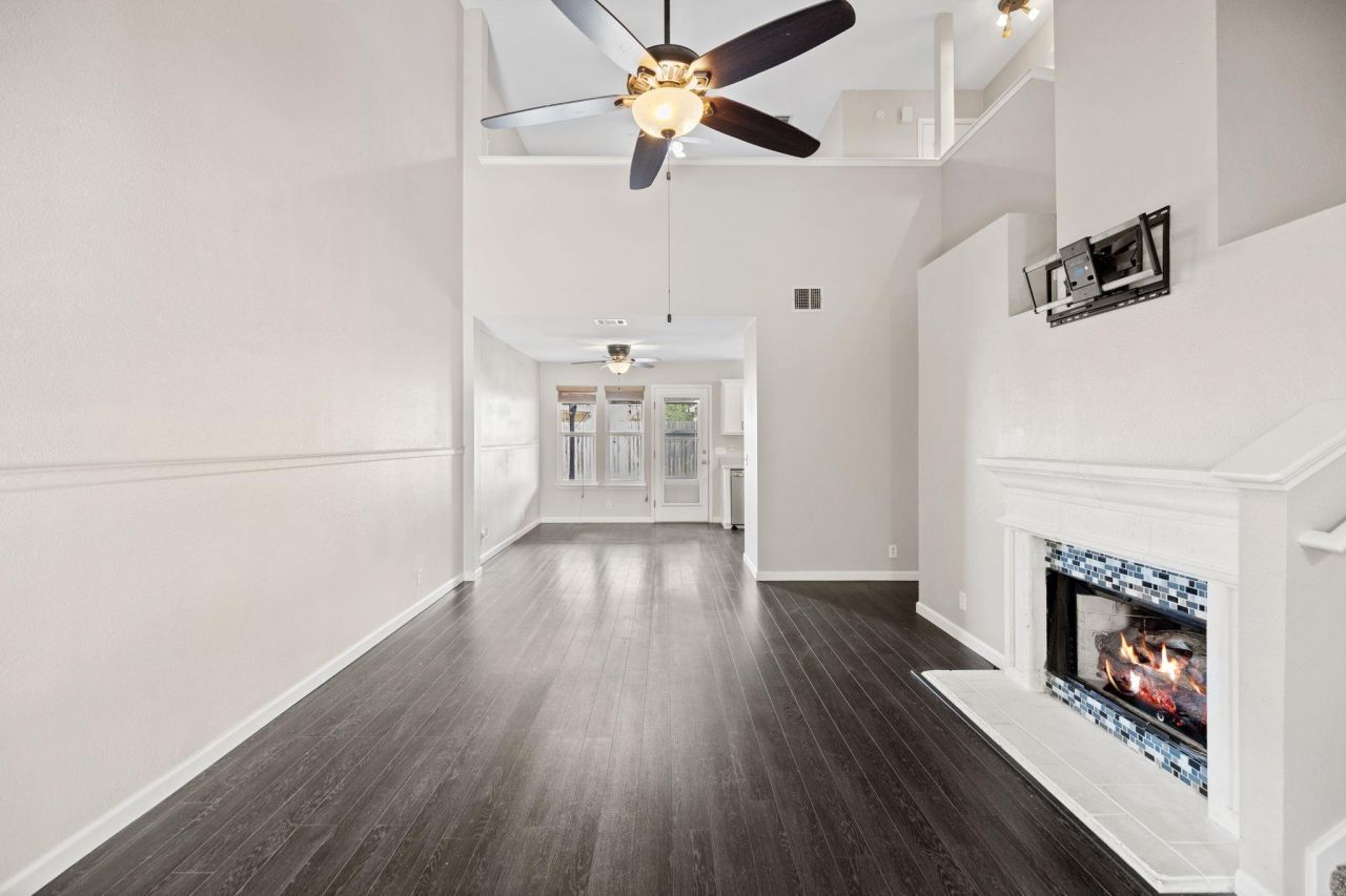 Welcome home to this inviting two-story property tucked away on a cul-de-sac. Offering 3 bedrooms, 2.5 bathrooms, this home features a cozy fireplace, laminate flooring, carpeted stairs, and a spacious two-car garage. The kitchen includes stainless steel appliances a. Outside, enjoy a fully fenced backyard with a covered back porch and concrete flooring?ideal for relaxing, entertaining, or morning coffee.This home delivers comfort, character, and convenience in the heart of Hutto.
