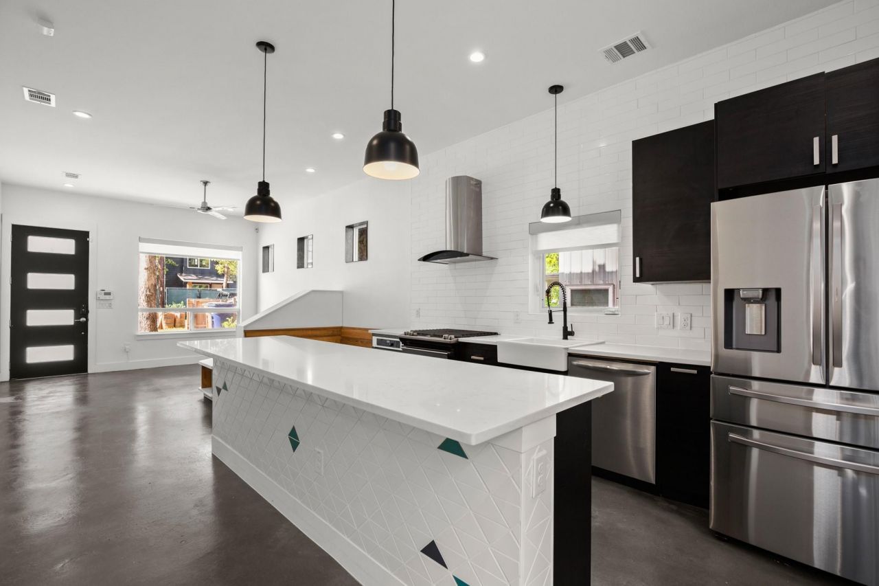 Welcome to 4608 Santa Anna St, a modern yet warm home on the east side.This 2018 home was finished out with the finest attention to detail. Upon entering, expansive windows fill the living room and kitchen with light. A custom-designed seating area with ample storage means you have an intentional dining area as well as built-in storage for your anything else you want to stow away.The dining area open into a kitchen that excels with group dining. Theres a 5-burner slide-in gas range, a farmhouse sink, sprawling quartz counters, and a breakfast bar. Downstairs is completed with a half bathroom with updated tile, a shelved pantry, the entrance to the garage/gym, and a dedicated laundry closet.Heading upstairs, youll see the second living space with a stunning architecturally-inspired work station. This custom-built nook creates the perfect work-from-home life without compromising a bedroom. The two secondary bedrooms share a full bathroom, making it perfect for little ones and/or a guest room or office. The spacious primary suite is one of the highlights of the home. There are gorgeous pitched ceilings, a custom accent wall thats illuminated by ample natural light, and two separate closets with built-in storage so you dont have to share. The attached ensuite bathroom is tastefully remodeled with Clay Imports tile, a walk-in shower, and dual vanity sinks.The outside living space is complete with a deck and custom built-in seating to entertain guests. Finally, this home has tech upgrades everywhere, including a Tesla charger (level 2), keyless entry, Nest thermostats, WiFi-enabled garage door, outside monitoring, and a tankless water heater. There are no HOA fees, shared expenses, shared driveways, or shared walls with the B unit. The cherry on top is that youre walking distance to beloved spots like Palomino Coffee and all that Springdale General has to offer (Medici, Central Athlete, The Front Page, Align Pilates, and The Paper + Craft Pantry).