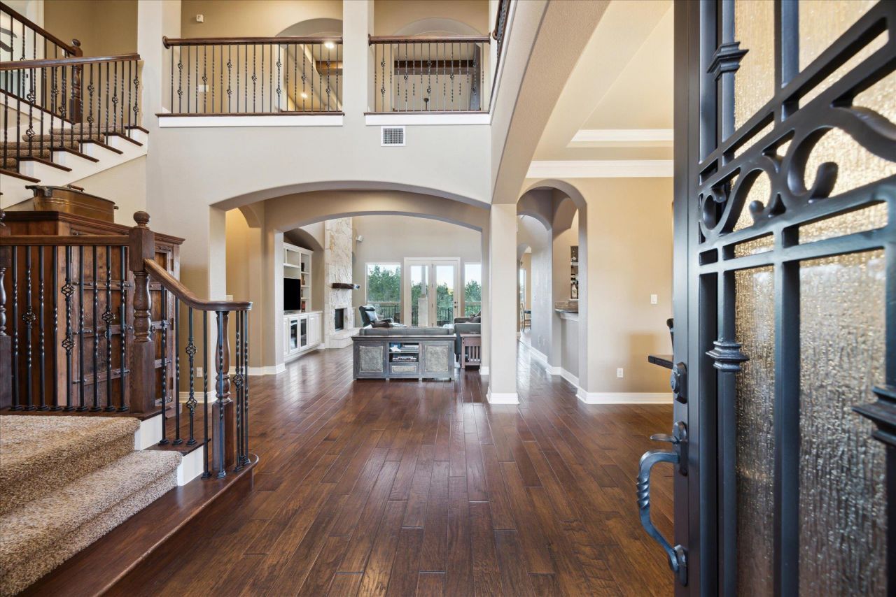 Located in the gated Savannah Point section of Steiner Ranch, 613 Horseback Hollow offers golf course and greenbelt views along with a private backyard built for entertaining.This two-story home features 4 bedrooms, 3.5 bathrooms, and an open layout filled with natural light. The kitchen flows into the main living area and includes a wet bar, while large windows frame views of the backyard and pool.The primary suite is on the main level and includes a spa-like bath plus a flexible bonus space?ideal for a home office, nursery, or sitting area. Upstairs, youll find three additional bedrooms, two full baths, and a spacious media/game room that opens to a covered balcony.Outside, enjoy a saltwater pool with waterfall, fire pit, built-in grill, bar seating, and multiple gathering areas.Additional features include a split 3-car garage (2-car attached plus separate 1-car garage) and access to Steiner Ranch amenities, Lake Austin, and highly rated schools.A great opportunity in one of Steiner Ranchs most desirable gated communities.