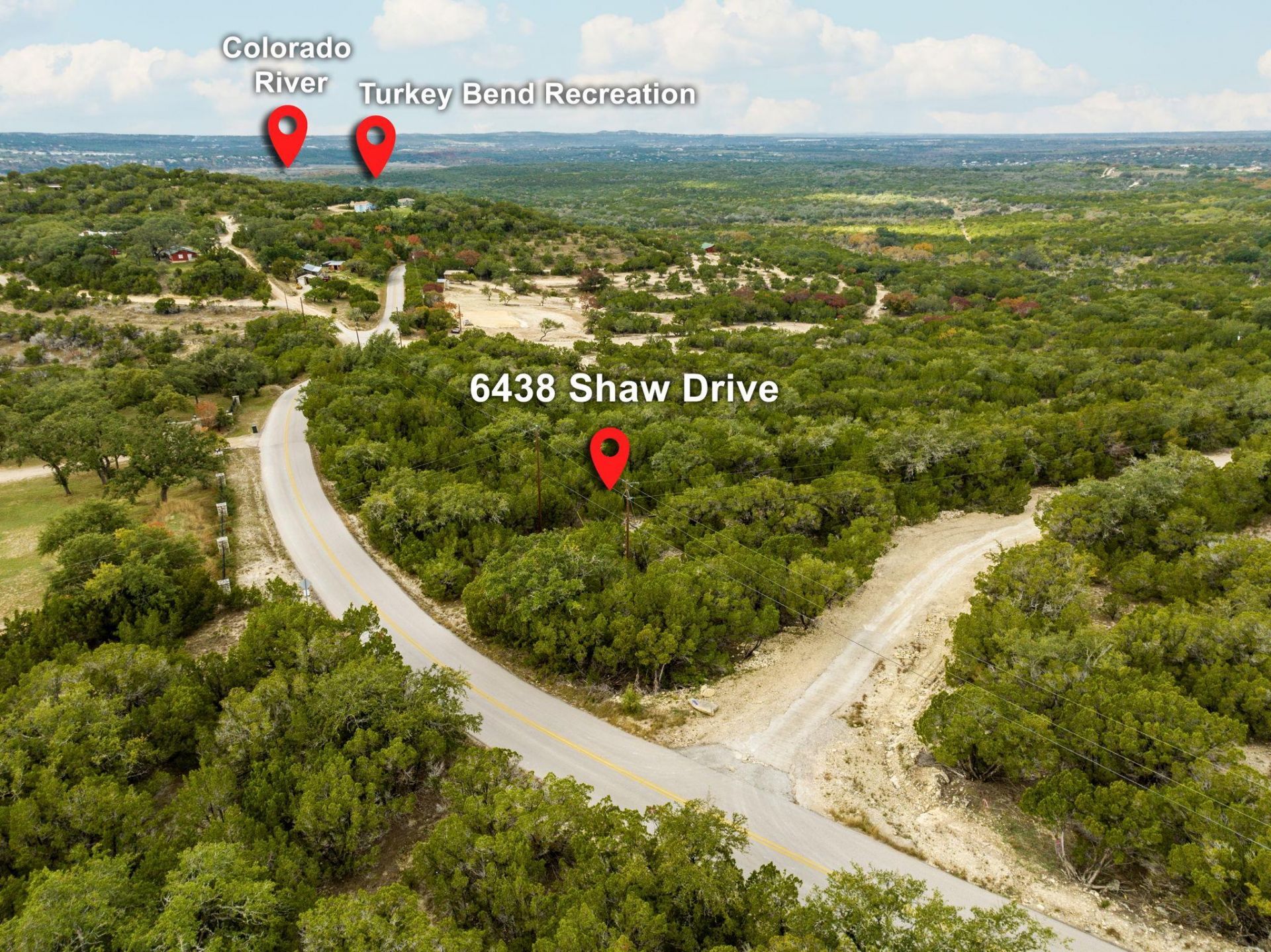 This 5.39 acre lot of hill country perfection offers the ultimate in privacy and several easy options for homesites with dramatic, expansive and unobstructed views to the west from elevations of 920 to 1005. TOPOGRAPHIC MAP WITH ALL OAK TREES MARKED in uploaded to photos and documents. The VIEW is heavily wooded hill country that spreads from the valley below to the ridge of distant hills to the west, and SUNSETS you must see to appreciate! Located midway between Jonestown/ Lago Vista and Marble Falls, it is just .9 miles from the Turkey Bend Recreation Area, 5.4 miles to Balcones Canyonlands National Wildlife Refuge, 10.8 like to Lowes Grocery Market or SLR Grocery, 11 miles to Hidden Falls Adventure Park, 18 miles to Marble Falls, and 53 minutes to Austin. Other points of interest nearby include Delaware Springs Golf Course, Longhorn Cavern State Park, Inks Lake State Park, Lake Buchanan, and of course, Lake Travis is just down the hill! This is undeveloped and UNRESTRICTED land. A well and septic system will be needed, as well as electricity provided by Pedernales Electric. Propane is permitted. Most of the lots along Shaw Road are several acres. Build your DREAM HOME in this DREAM LOCATION and enjoy the sunsets and hill country views, the proximity to the Colorado River and many recreational opportunities, all less than an hour from Austin!