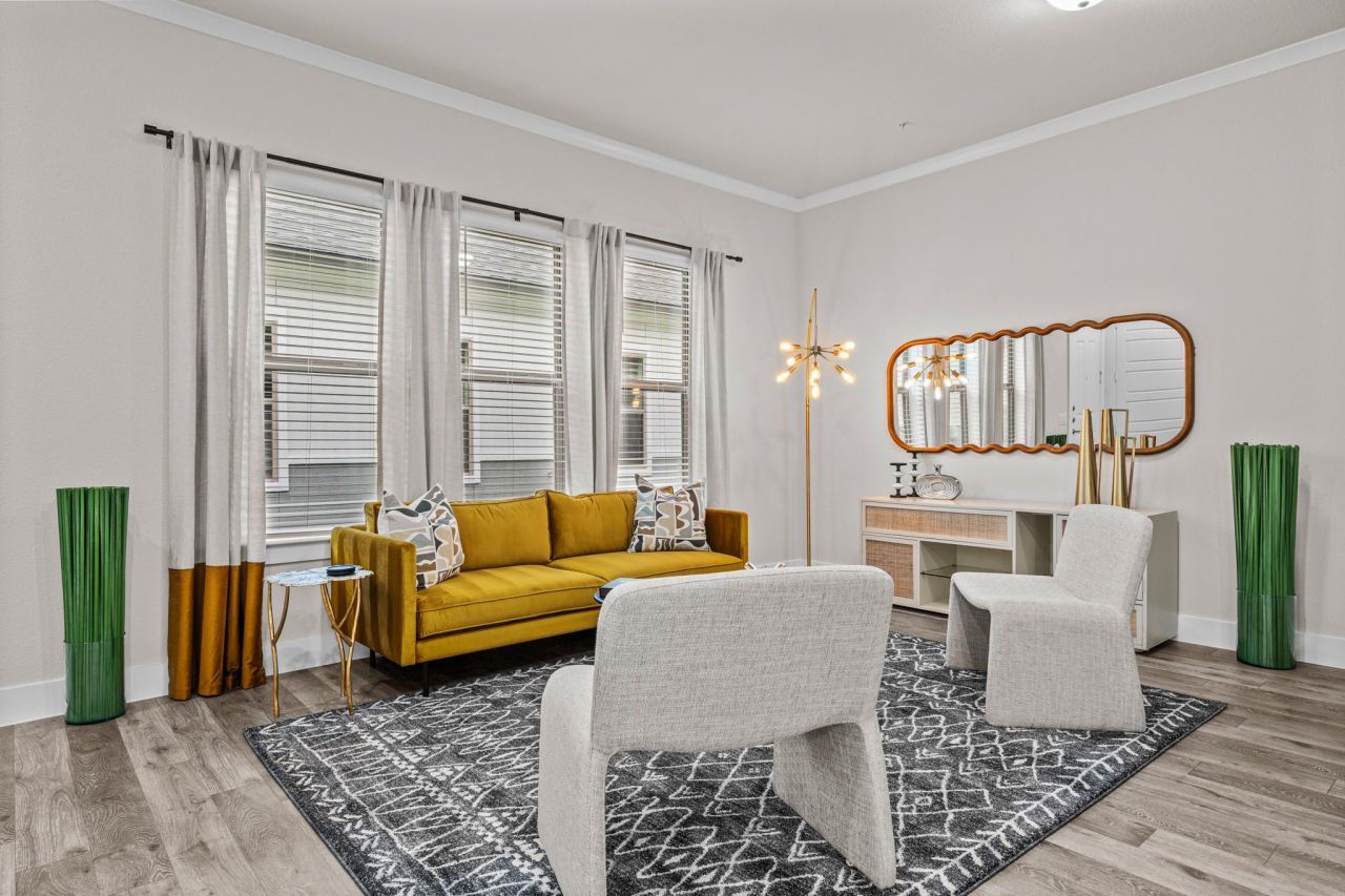 Private Fenced-In Yards & Covered Patios with Weekly Lawn Care Included in lease. First-Floor Entrance with No Adjoining Homes Above or Below, Doggie Doors available in some units, Wood Plank-Style Flooring, Tall, Expansive Windows, 2-Inch Custom Window Treatments, Quartz Countertops in Kitchen & Baths, Modern Tile Backsplash, Under-Cabinet Lighting, Pantries with Built-in Shelves, Stainless-Steel, Under-Mount Kitchen Sink with Retractable Faucet, Dual Sinks, Garden Tubs, Full-Size Washer/Dryer Connections, Walk-in Closets,9- to 10-Foot Ceilings & 8-Foot Doors, Programmable Thermostats, Energy-Efficient Insulation, Reflective Radiant Barrier Roofing & Extensive Extra Insulation, Double-Pane Windows, 16 SEER Heat Pump HVAC, Pet-Friendly Community with Walking Trails & Waste Stations, Private Tanning Facility, Business Center with 27 iMac & PC Computer Stations, Outdoor Wi-Fi Lounge, Package Lockers & Mail Center, Community Events, Including Catered Brunches & Community Socials, Complimentary Starbucks ; Wi-Fi Cafe;, Spectrum All-fiber High Speed Internet, Eco-Friendly, Health-Conscious, Non-Smoking Environment, 24/7 Emergency Maintenance Service, Valet Trash Service, Onsite Management