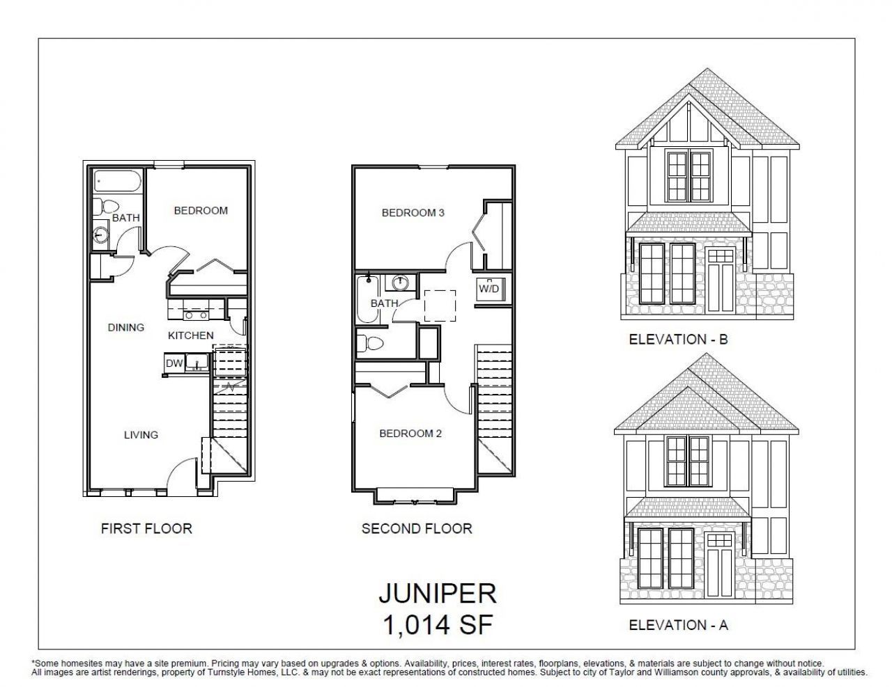 22 homes available from $229,900 to $279,900! The Juniper is a modern 3 bed, 2 bath stand-alone condo in The Villas at Cottonwood Trail?a boutique 22-home community in Hutto, TX. Priced from $249,900, this thoughtfully designed floor plan features a bright, open living, kitchen, and dining area with large windows that bring in abundant natural light. A main-floor bedroom with ensuite bath is privately located near the downstairs washroom. Upstairs includes two spacious bedrooms with large closets, a full bath, and a flexible loft space?ideal for a home office, playroom, or media area. Washer/dryer connections are conveniently located near the upstairs bath. Each home includes a private fenced yard, dedicated parking, and low-maintenance native landscaping. Enjoy access to miles of hike & bike trails, Fritz Park, playgrounds, splash pads, and more. Located minutes from Austin, Tesla, Samsung, and major highways, this is a rare opportunity to own new construction under $300K in a high-growth area. The Juniper offers a clean, modern layout with natural light, privacy, and value.Site premiums may apply. Buyer to verify all information.